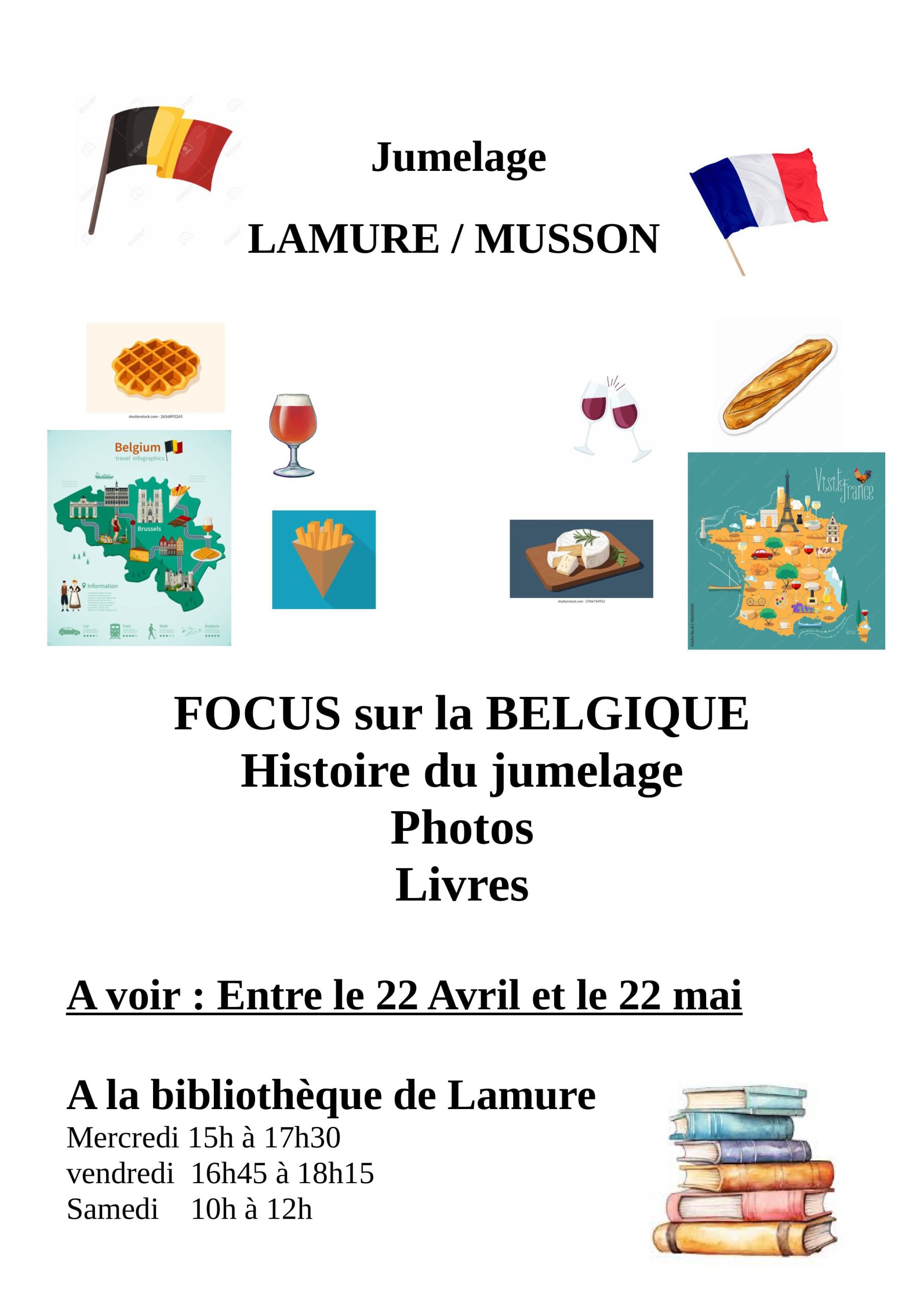 En prévision de l’arrivée de nos amis belges pour le week-end de l’ascension, les bénévoles de la bibliothèque municipale organise un Focus sur la Belgique ( histoire du jumelage, photos, livres…)
