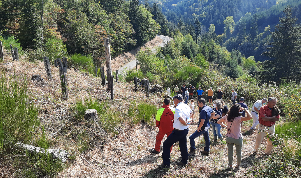 En 2018, le GAL (Groupe d’Action Local composé d’acteurs publics et privés qui pilotent le programme Leader pour la COR) valide le projet. Le projet prend forme notamment avec l’aide de la MFR de Lamure. Deux zones en “libre évolution” ont été tracées, sur lesquelles une observation et un suivi des plants présents et à favoriser vont être effectués. Une zone avec un reboisement diversifié (on notera notamment la présence de chêne et de châtaigner) ainsi qu’une zone avec des plants de résineux adaptés au changement climatique (pins et cèdres).